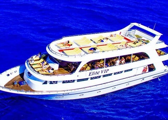 Visit Ras Mohamed National Park aboard a luxurious boat to explore the vibrant coral reefs and a variety of exquisite fish species.